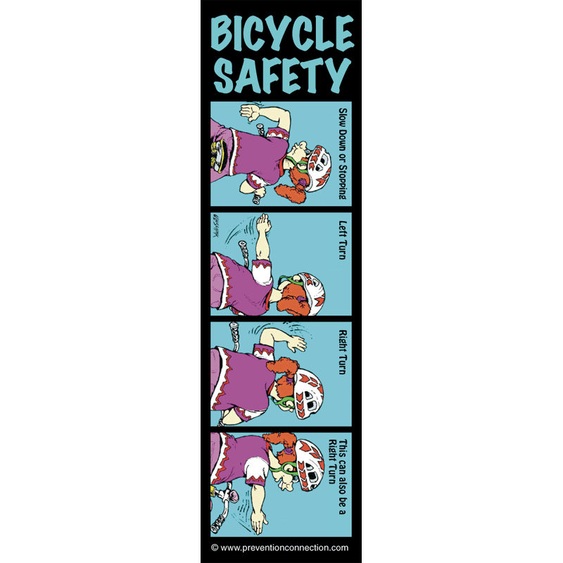 Bicycle Safety Bookmarks teach how hand signals will alert car drivers and others on the road about what the bike rider is going to do next.