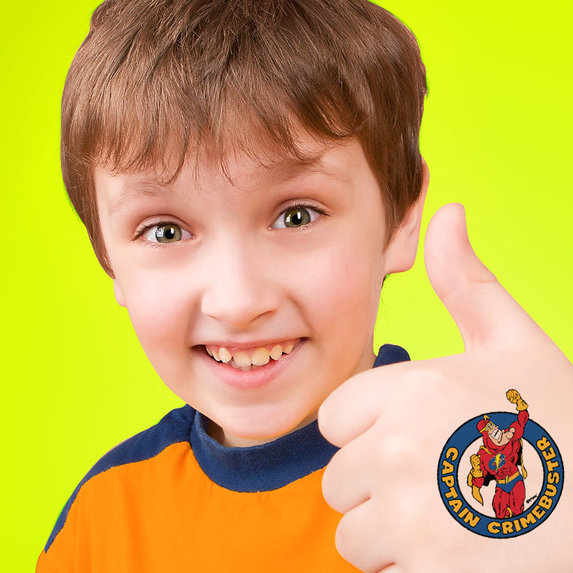 Captain Crimebuster Temporary Tattoos are a great way to reinforce your safety messages.