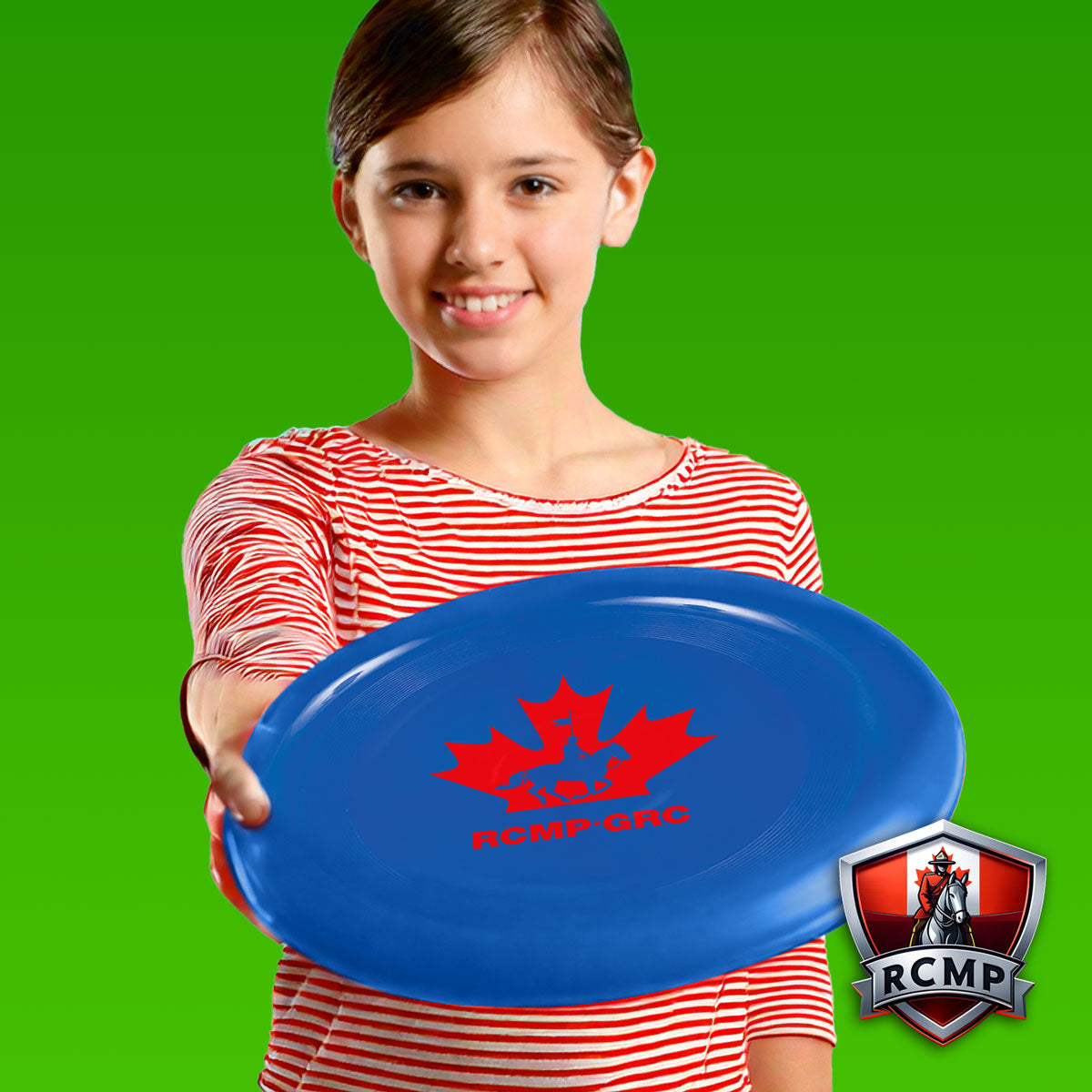 Bring fun and fitness to the park, playground, or backyard with the official RCMP Flying Saucer! This classic red frisbee features the iconic RCMP "Rider on Maple Leaf" emblem, making it both a playful and patriotic piece of Canadian pride.